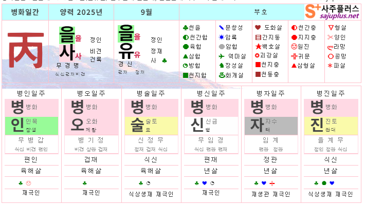 병화일간 9월운세-2025년 9월(을유월) 일주운세 월운세, 일진운세 사주보기 운세보기
