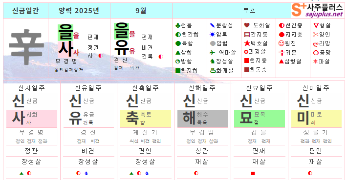 신금일간 9월운세-2025년 9월(을유월) 일주운세 월운세, 일진운세 사주보기 운세보기