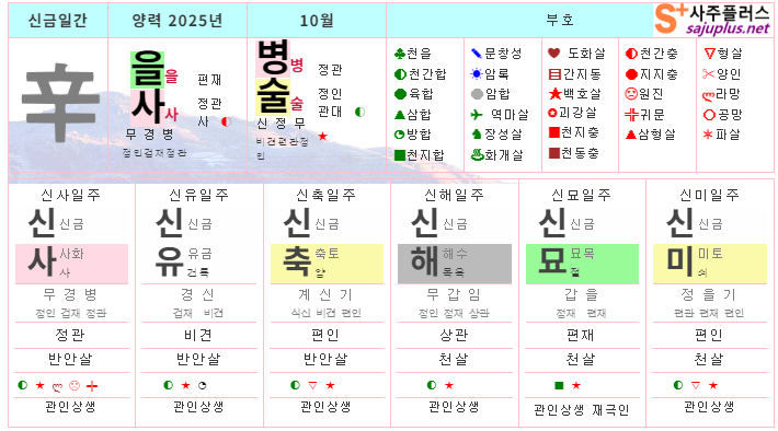 신금일간 10월운세-2025년 10월(병술월) 일주운세 월운세, 일진운세 사주보기 운세보기