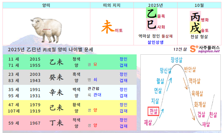 10월 양띠 운세 - 2025년 10월 을사년 병술월 띠별 연령별 사주 운세보기