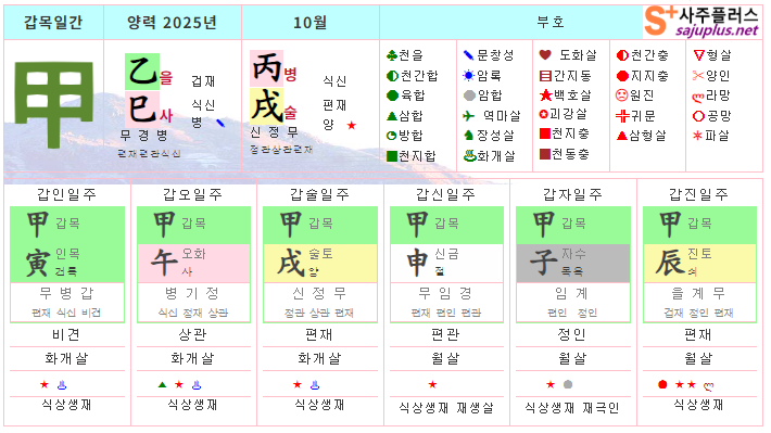 갑목일간 10월운세-2025년 10월(병술월) 일주운세 월운세, 일진운세 사주보기 운세보기