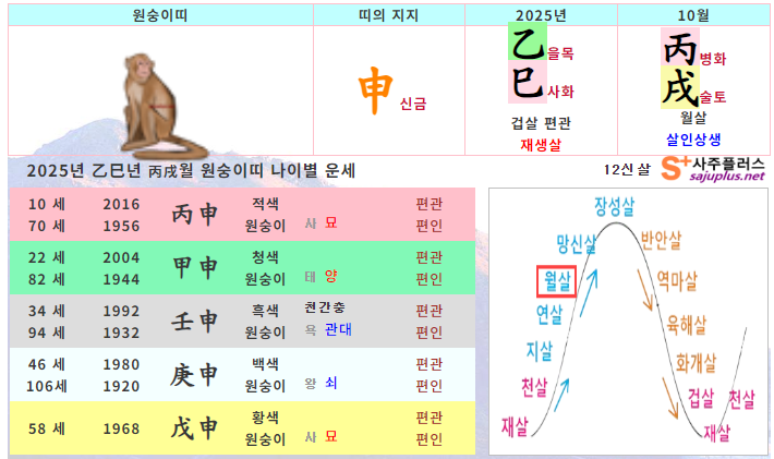 10월 원숭이띠 운세 - 2025년 10월 을사년 병술월 띠별 연령별 사주 운세보기