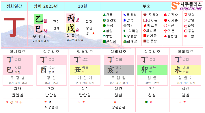 정화일간 10월운세-2025년 10월(병술월) 일주운세 월운세, 일진운세 사주보기 운세보기