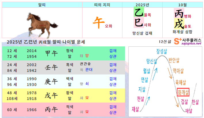 10월 말띠 운세 - 2025년 10월 을사년 병술월 띠별 연령별 사주 운세보기
