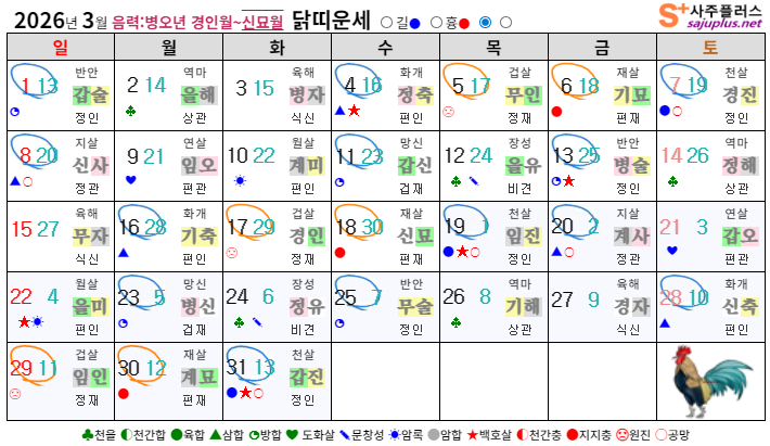 ❚ 닭띠 3월 일진 운세